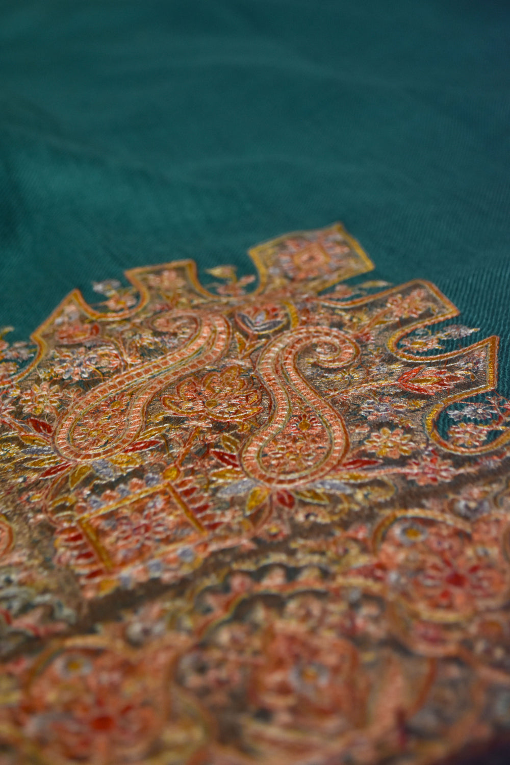 Encapsulating the elegance of timeless tradition, this Duar Kunj shawl features an intricately crafted four-sided border on a pure pashmina base. Each edge tells a story of finesse — delicately woven patterns framing the soft expanse of fabric. A masterpiece of symmetry and grace, perfect for those who cherish quiet luxury and heritage detailing.