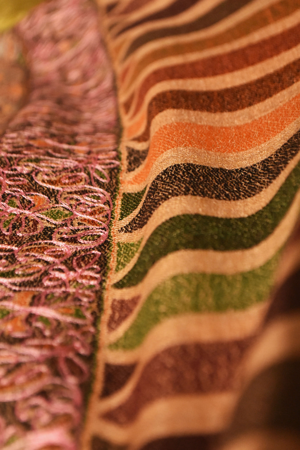 An ode to artisanal heritage, this Kaani Kalamkar shawl is crafted from the finest pure Pashmina, adorned with intricate Nalki outlines that trace each motif with quiet brilliance. The fusion of Kaani’s woven artistry and Kalamkar’s painted grace creates a tapestry of timeless elegance. Lightweight yet luxuriant, it drapes like a whisper of tradition — refined, radiant, and eternally poised.
