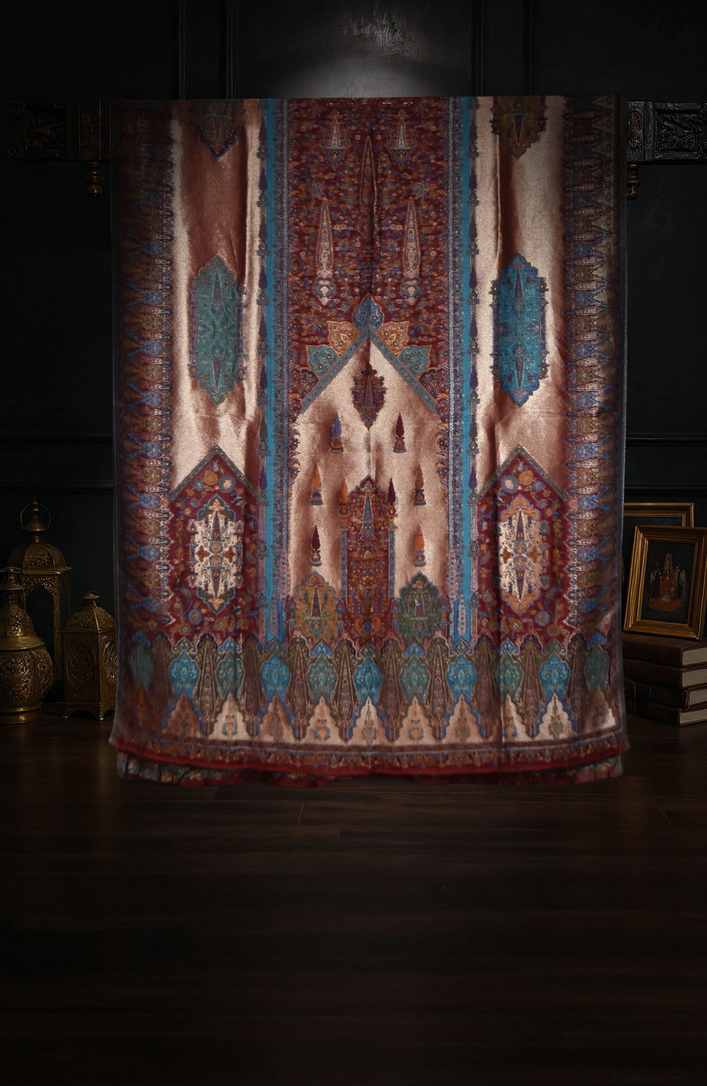 Radiant and refined, this Kaani Moonlight dupatta shimmers with subtle brilliance on a soft, woven base. The delicate interplay of Kaani weave and moonlit sheen creates an ethereal texture — graceful by day, luminous by night. A timeless accessory that captures the quiet poetry of craftsmanship and light.